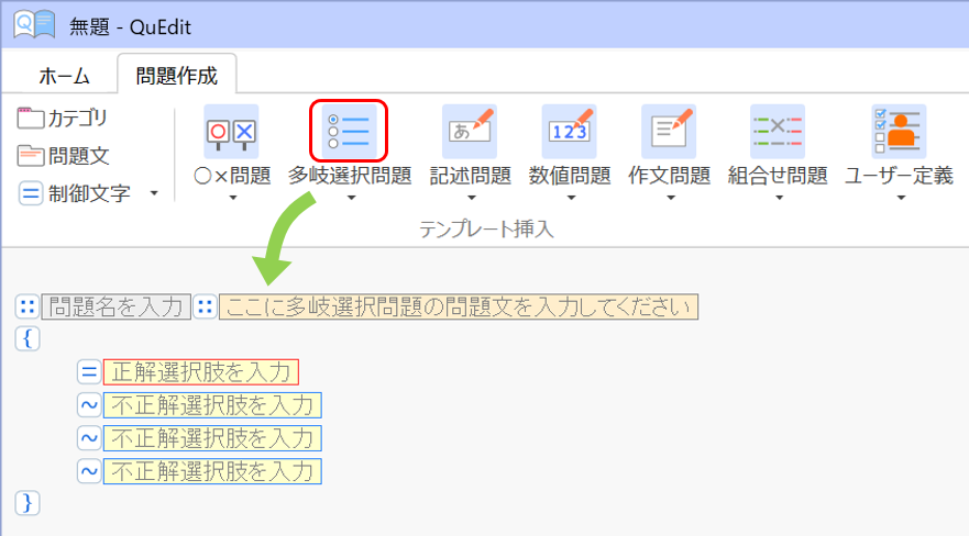 テンプレートやアシスト文字列による問題作成の誘導
