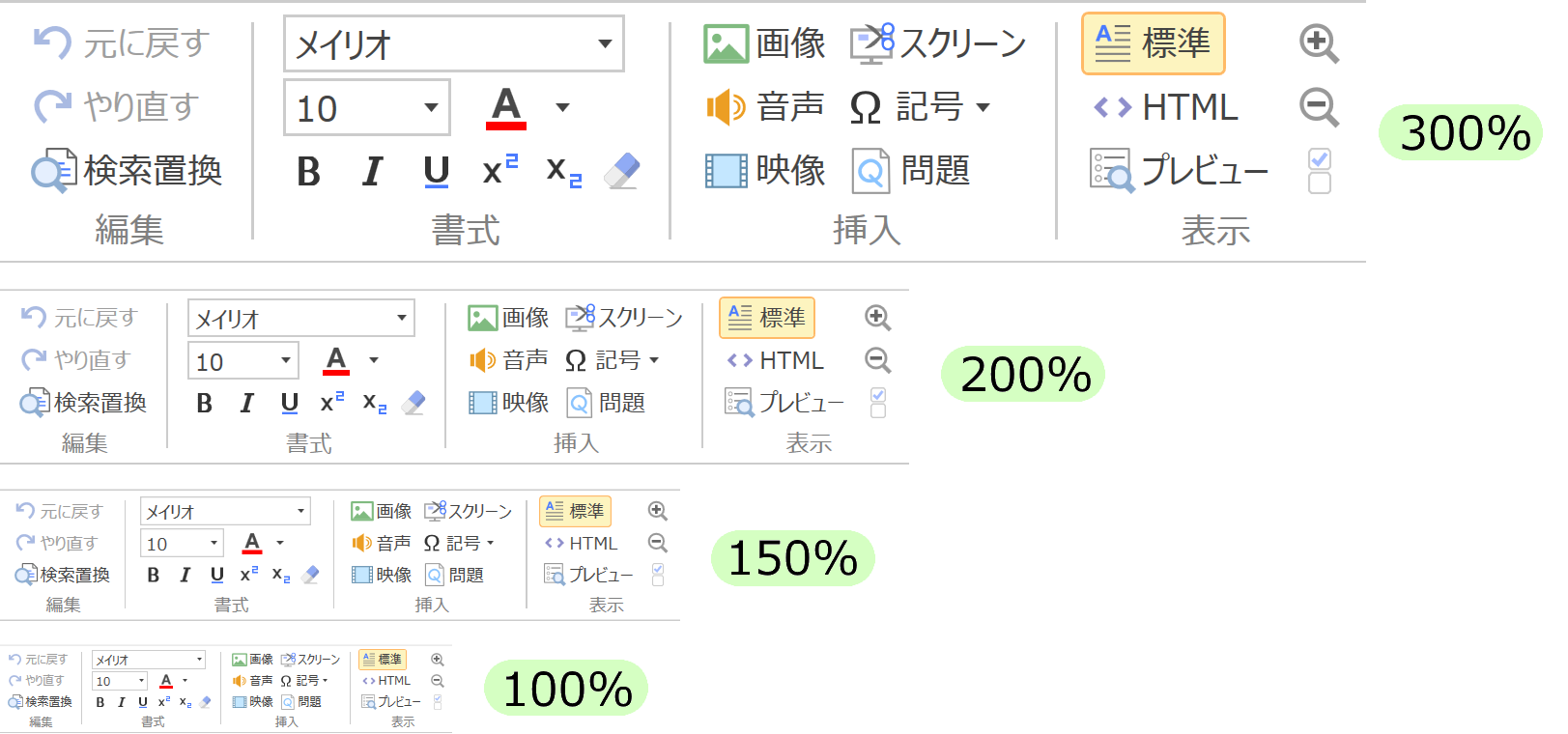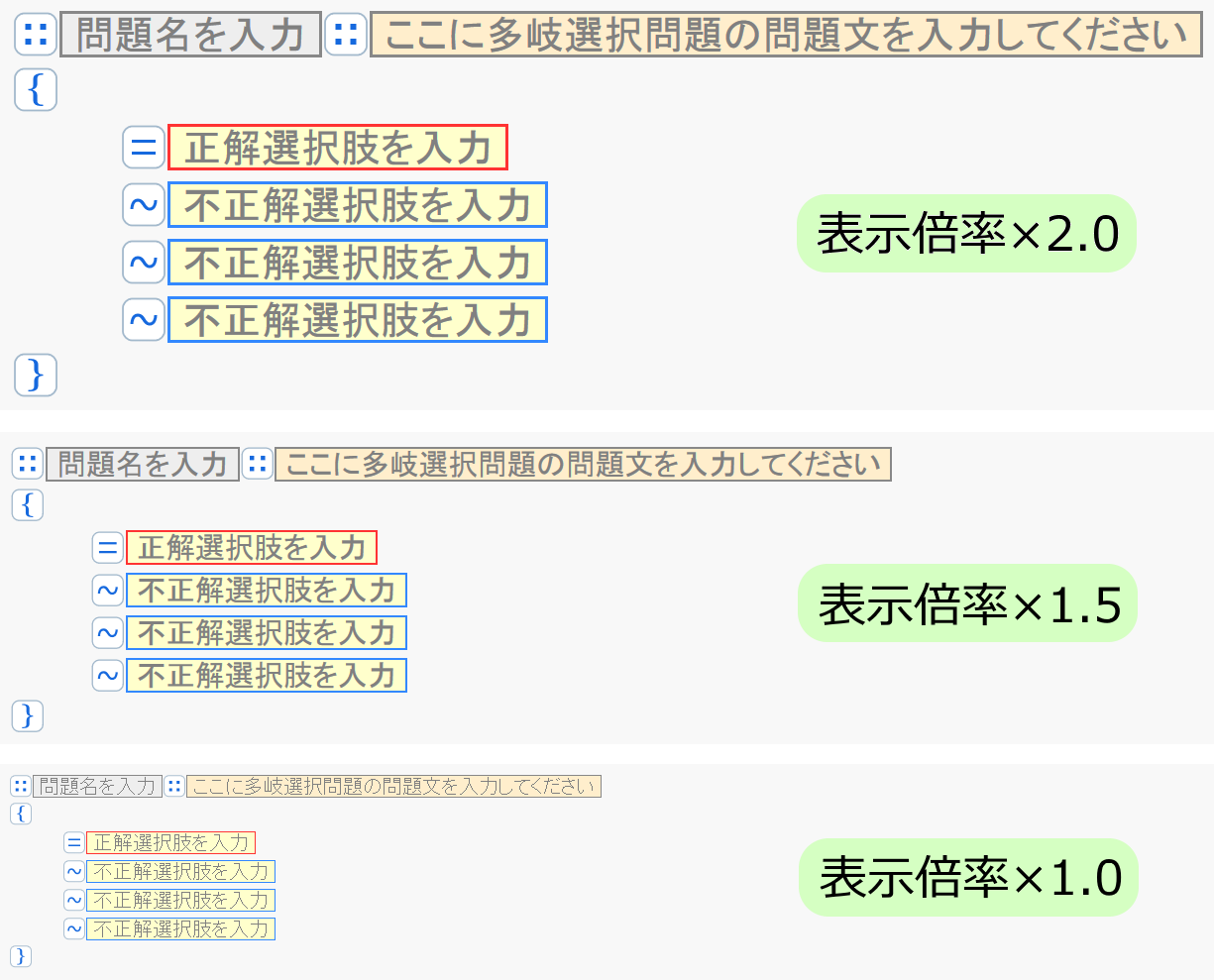編集画面の文字表示の倍率は,0.1倍刻みで調整可能。個々のユーザーに合った問題作成環境を提供します。
